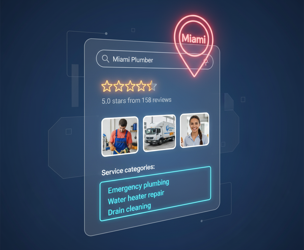 Pro Tip: In Miami, a plumbing business with 100 reviews will usually outrank one with 10 reviews, even if both have websites.